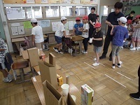 お店屋さんとお客さんにわかれて、しいの木まつりをおこないました。子どもたちは手作りの的あてや魚釣り、ぴょんコップやぱっちんジャンプ等の工夫したお店を開いて、みんなで楽しみました。