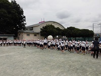 10月14日。運動会の全体練習です。開閉会式の並び方、準備運動の練習をしました。後半には、今年から始まる「全校大玉送り」の練習をしました。初めてでしたが、上手に大玉を送っていました。