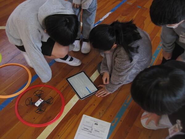 11月26日(水)27日(木)に、6年生の総合的な学習の時間(STEAMS TIME)で、ドローンをプログラミングで飛ばしてみる体験学習を行いました。